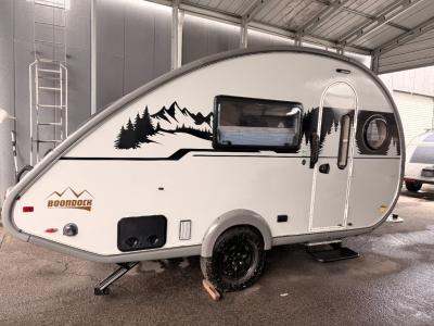 The TAB 400 is built with the unique teardrop design on a single axle, and includes composite flooring, molded underbelly shield, and a rear stargazer window allowing you to stargaze at night. There is a 310-watt solar panel included allowing you to camp off-grid, and the Alde central heating/hot water system plus the central air conditioning will keep you comfortable whichever season you camp. You will also love the interior that offers a spacious wet bath, dual sleeping areas, and kitchen amenities. The Boondock package comes standard, but you can also choose the optional Black Canyon Upgrade with an additional solar panel, holding tank heaters, underglow lights, and an XL diamond plate storage tub!